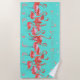 You choose background colour (we chose aqua) - Keep or change the text too - all these flamingos are hurrying to get to the beach feathers flying everywhere - a fun beach towel - you surely will not forget where you are on the beach or poolside.