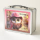 This is a standard metal lunchbox that appears to work just fine. We designed this box ourselves with an uploaded photo and custom text on the front and back. It looks absolutely beautiful except the front of the lunchbox is not centered like it shows in the photo. The print borders don't align with the inset flat part of the box where the preview photo online showed it perfectly centered in there. The back looks nice and centered though.