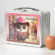 Lunch box featuring an illustration of a cute owl framed by girly pink.