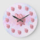 What a cute nature theme wall clock funny pink pigs and a colour coordinated abstract background on the clock face. Designed for a kids bedroom, bathroom or fun clock for a adults that want something humourous for the pig collector.