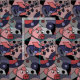 Wonderful funny pink pig is playing the guitar in this fun original art abstract fabric design.