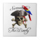 A funny pirate saying with a classic jolly roger pirate skull and parrot, Surrender the booty.