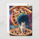 Funny Pizza Cat in Space Floating Pizzas Postcard