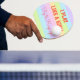 A funny pastel striped ping pong paddle that says "I play like a girl, try to keep up"