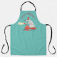 Funny Holiday themed apron features watercolor illustration of a snowmobiling polar bear with red arched text in modern font