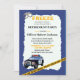 Humourous Blue and Yellow retirement invitation for a police officer. Design has a police suv, a yellow police line do not cross graphic, hand cuffs and the words freeze. Easy to customise with your party details.