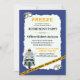 Humourous Blue and Yellow retirement invitation for a police officer. Design has a police officer on a motorcycle, a yellow police line do not cross graphic, hand cuffs and the words freeze. Easy to customise with your party details.