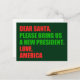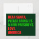 Dear Santa, please bring us a new president. Love, America. Funny political Anti Trump Christmas postcards. Holiday humour greeting postcard.