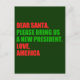 Dear Santa, please bring us a new president. Love, America. Funny political Christmas cards for Americans against Trump. Holiday humour greeting card.