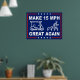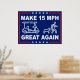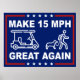 Make 15 mph great again on the Peachtree City golf cart paths. Life is better at 15 mph. Funny political gift sign in a classic American red, white, and blue presidential slogan style with American five-pointed stars. Powerful PSA and clever political message to speeding golf cart drivers who need to slow down and respect walkers, runners, and dog owners on the paths in Patriotic Peachtree City, Georgia, USA.