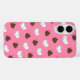 Funny and quirky phone case features a pattern of cartoon kawaii poop emojis and rolls of toilet paper waving at each other, on a pink background. Adorn your phone with these hilarious "best friends!"