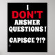 funny poster "I DON'T ANSWER QUESTIONS"