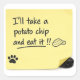 A hilarious sticker featuring a realistic yellow sticky note with the quote "I'll take a potato chip and eat it !!" along with a cute potato chip doodle and playful dog detail. Perfect for laptops, notebooks, water bottles, and meme lovers who enjoy fun designs.