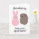 A funny Easter card featuring a pink bunny and a potato on the front of this card. Inside reads an Easter message which can be easily personalised.
