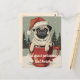 Vintage nostalgia postard for christmas with a cute pug sitting in a cup. Personalise this Holiday Card by adding your own text easily on the sales page template.