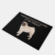 Funny home welcome mats with humourous saying related to your Pug family pet and the noises they make. A funny way to let your visitors to your home know that your pet Pug is dangerous.