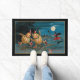 Funny Pumpkin People Chased by Halloween Witch Doormat