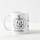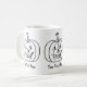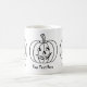This Halloween picture on this great tea or coffee mug is a black outline of a funny pumpkin with a expression carved out as its face. The Halloween image looks great against the white background of this quality Halloween china mug, I’m sure anyone who receives this funny pumpkin face mug as Halloween treat will be pleasantly surprised. This ia a customisable Halloween mug, you can personalise it with your own text.