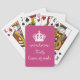 Monogram playing cards for ladies or girls with funny Queen monarchy crown and any lady or girls name or monogram initials with a pink background colour. Customise the background colour and name as a party favour for a bachelorette party, birthday party.
