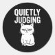Funny Quietly Judging Sarcastic Crazy Cat Lover Gr Classic Round Sticker
