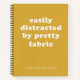 A must-have for fabric lovers and sewing enthusiasts! This fun and stylish notebook features the phrase "Easily Distracted by Pretty Fabric" in bold typography on a warm mustard background. Perfect for jotting down project ideas, fabric swatches, and creative inspirations. Personalise with your name for a unique touch! Great for quilters, seamstresses, and anyone who can't resist a beautiful textile.