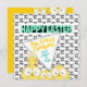 With four cartoon, crazy eyed chickens, on a black and white chicken foot print background in front and another four crazy chickens peeking-in, on a yellow background on the back, this one is just so much fun!