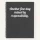A funny, humourous notebook with a dark grey background and modern, bold white typography that reads "Another fine day ruined by responsibility". Adulting can be hard at times so add some humour where you can!