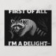 Funny Racoon Quote - First of All I'm a Delight Postcard