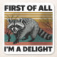 ‟Funny Racoon Quote Retro Design – “First of All, I’m a Delight” | Cute Sarcastic Animal Art | Humour Wildlife Gift for Nature Lovers‟