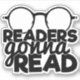 A cool typography sticker with glasses and a quote that reads: "Readers gonna read".