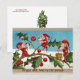 FUNNY RED CHRISTMAS ELVES,HOLLYBERRIES,MISTLETOES HOLIDAY POSTCARD