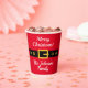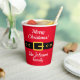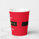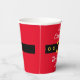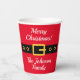 Funny red Christmas Santa Claus belly custom Paper Cups. Fun Holiday party design for kids and adults. Add your own greeting and family name. Fun for friends, family, business, guests, clients, visitors, children, employees and more. Also great for x-mas in July!