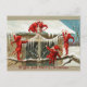 FUNNY RED ELVES AND CHRISTMAS DECOR WITH ICICLES HOLIDAY POSTCARD