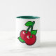 Drink your coffee from this hot combo mug this with a cute cartoon set of two red cherries.