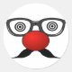 Funny Red Nose weird  eyes glasses moustache round sticker