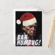 Trump is wearing a Santa hat and a wreath while saying "Bah, Humbug!" on this really ugly Christmas sweater.