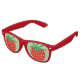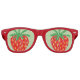 Funny red strawberry party shades sunglasses for collectors and lovers of this healthy fruit. Cute food art print design for vegan, vegetarian, chef cook or crazy collection obsession. Custom background colour. Fun fashion gift idea / costume accessory for Halloween. Cool party outfit prop.