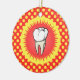 Decorate your room with this ceramic ornament with a freshly pulled Molar on a red starburst. The background is yellow.