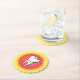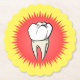 Get your party these practical paper coasters with a freshly pulled Molar on a red starburst. The background is a light yellow.