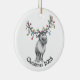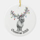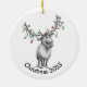 This hand-drawn ceramic ornament features a delightfully bewildered reindeer wrapped in festive string lights — a perfectly relatable mood for the holidays!