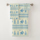 Funny Reindeer Christmas Tree Snow Blue Pattern Bath Towel Set