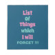Funny Reminder for Forgetful People Don't Forget Notepad with a funny reminder quote - List Of Things which I will FORGET !!! Hey there, forgetful friend! Time for a scribbly reminder to never forget your ultimate memory booster: the notepad! It's like a brain extension, capturing all your brilliant ideas, to-do lists, and random thoughts before they evaporate into thin air. So, next time you're struck by a stroke of genius or need to jot down an important reminder, don't forget your trusty notepad!