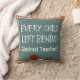 Retired Teacher's Chalk Board Design Pillow, "Every Child Left Behind". Artist drawn chalk board with chalk, eraser and apple. Great gift for any teacher or assistant teacher.