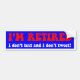 Hilarious and funny retirement bumper stickers for retired people. Humourous retirement stickers for that special dad, mum, grandpa or grandma to celebrate their retired life.