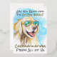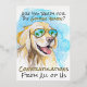 Cute and modern retirement congratulation card with a funny golden retriever on a tropical beach. Original design created from one of our hand painted watercolors.