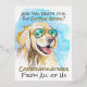 Cute and modern retirement congratulation card with a funny golden retriever on a tropical beach. Original design created from one of our hand painted watercolors.