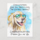 Cute and modern retirement congratulation card with a funny golden retriever on a tropical beach. Original design created from one of our hand painted watercolors.