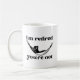 Bring some laughs to the office with this hilarious retirement mug! The front shows the quote “I’m retired, you’re not” alongside a chill hammock scene under palm trees, capturing the ultimate dream life. On the back, “Have fun at work” is printed with the retiree’s name and retirement year, making it a personal and unforgettable farewell gift. It’s the perfect parting gift from the retiree to coworkers still stuck in morning meetings and deadlines. Whether they use it daily or keep it on their desk as a reminder of your well-earned freedom, this mug will bring a smile (and maybe a bit of jealousy).