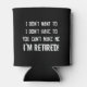 I don't want to i don't have to you can't make me i'm retired can coolers for men and women. Funny beverage holder with humourous saying / quote for retirement bbq party. Custom black and white cosy design for retired folks or retiring office worker, company employee, coworker, co worker, husband, wife, partner, boss, dad, mum, nurse, teacher, friend, coach, grandpa, grandma, grandfather, granddad, business owner, etc. Cute vintage faded grungy typography design. Double sided print. Personalizable props for fun and laughs celebrations at home or work.