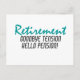 Send off your favourite retiree in style. Text reads "Retirement: Goodbye tension, hello pension!"